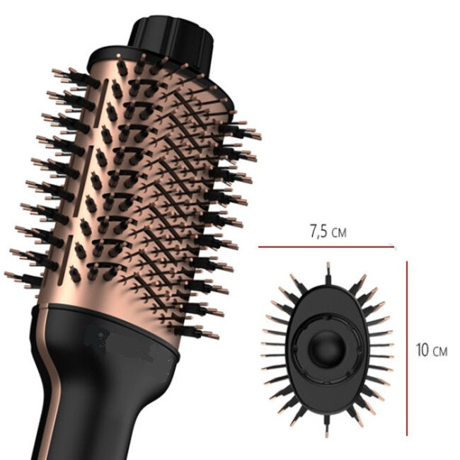 El cepillo de aire caliente 3 en 1 es la combinación perfecta de secador, cepillo y plancha. Úsalo como un secador de cabello, como un alisador de cabello ó como un rizador de cabello. Perfecto para todo tipo de cabello, puedes usarlo con el cabello cabello seco ó húmedo.Es eficiente en el ahorro de tiempo y dinero ya que te ahorra muchas idas al salones de belleza. Su calor permite reactivar los remanentes de las queratinas dejando tu cabello como si te la acabaras de aplicar.La calidad es siempre nuestra primera prioridad: tecnología lónica negativa, los iones negativos liberados por el peine de aire caliente pueden aumentar la humedad del cabello, reducir el daño del cabello, nutrir el cabello, eliminar completamente el encrespamiento y mejorar el brillo para un cabello sedoso y suave, sin electricidad estática.Diseño único: el cepillo para rizar y alisar el cabello está diseñado con cerdas de nailon para un fácil agarre de tu cabello. El cable giratorio de 360° permite una alta flexibilidad para moverse libremente sin que el cable se enrede o dañe.Múltiples ajustes de calor: 3 niveles de calor ajustables para diferentes tipos de cabello, Alto calor para el cabello grueso, bajo calor para cabello fino, ajuste flexible para fijar tu hermoso peinado. Este voluminizador se puede colocar más cerca del cuero cabelludo para levantar el cabello mientras lo usas.~ CARACTERISTICAS• El diseño único de cepillo es ovalado para alisar el cabello, mientras que los bordes redondos crean volumen• 1000/2000 vatios de potencia proporciona el calor justo, a diferencia de los secadores de cabello convencionales, este voluminizador se puede colocar más cerca del cuero cabelludo para levantarlo. Tiene 3 configuraciones de calor / velocidad para flexibilidad de peinado• Construido con un generador de iones genuino para promover un secado rápido y crear estilos llenos de brillo y cabello de aspecto saludable. el revestimiento cerámico ayuda a proteger el cabello del exceso de peinado con una distribución uniforme del calor que penetra el cabello rápidamente y se seca de adentro hacia afuera• Con respecto a la seguridad, el secador y voluminizador de cabello cumple con los requisitos de seguridad de ee. uu.~ QUE TE INCLUYE• Cepillo Secador Voluminizador 3 En 1