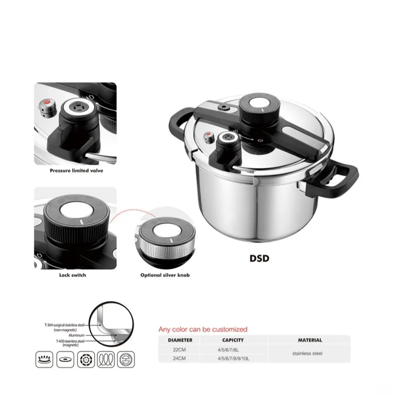Seguridad: Cuenta con múltiples sistemas de seguridad (generalmente 2 válvulas de presión y seguro de cierre) que permiten cocinar con tranquilidad.