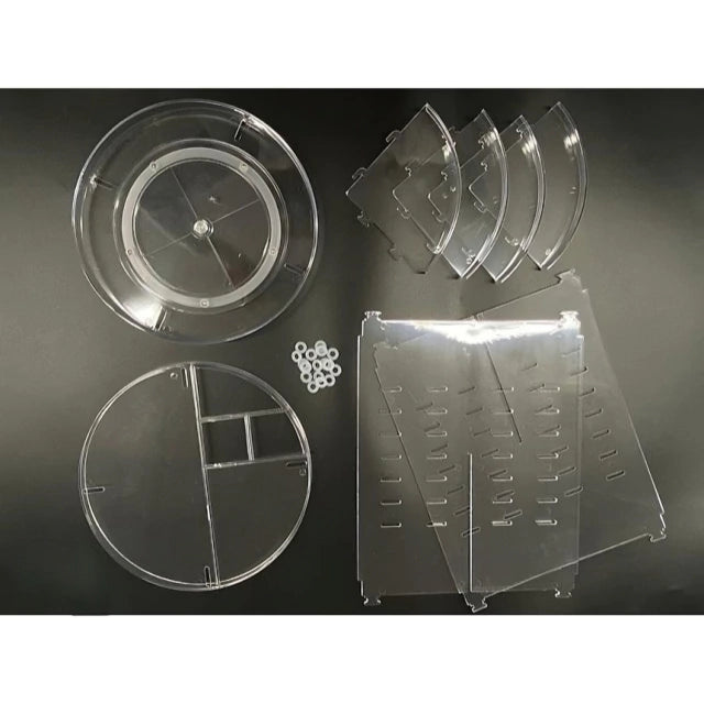 Organizador redondo giratorio ideal para mantener tus cosméticos, brochas y productos de cuidado personal siempre a la mano y en orden. Perfecto para tocadores, dormitorios y baños.Características principales:Diseño giratorio 360° para fácil acceso a todos tus productos.Estantes con altura ajustable según el tamaño de tus cosméticos.Fabricado en acrílico grueso y resistente.Capacidad para perfumes, cremas, brochas, labiales, bases y más.Fácil de armar, limpiar y mantener.Beneficios:Ahorra espacio y mantiene tu tocador ordenado.Visualiza fácilmente todos tus productos.Diseño elegante que combina con cualquier decoración.Ideal para uso personal o profesional.Contenido del paquete:1 organizador giratorio📦 Disponible para envío inmediato desde nuestras bodegas.